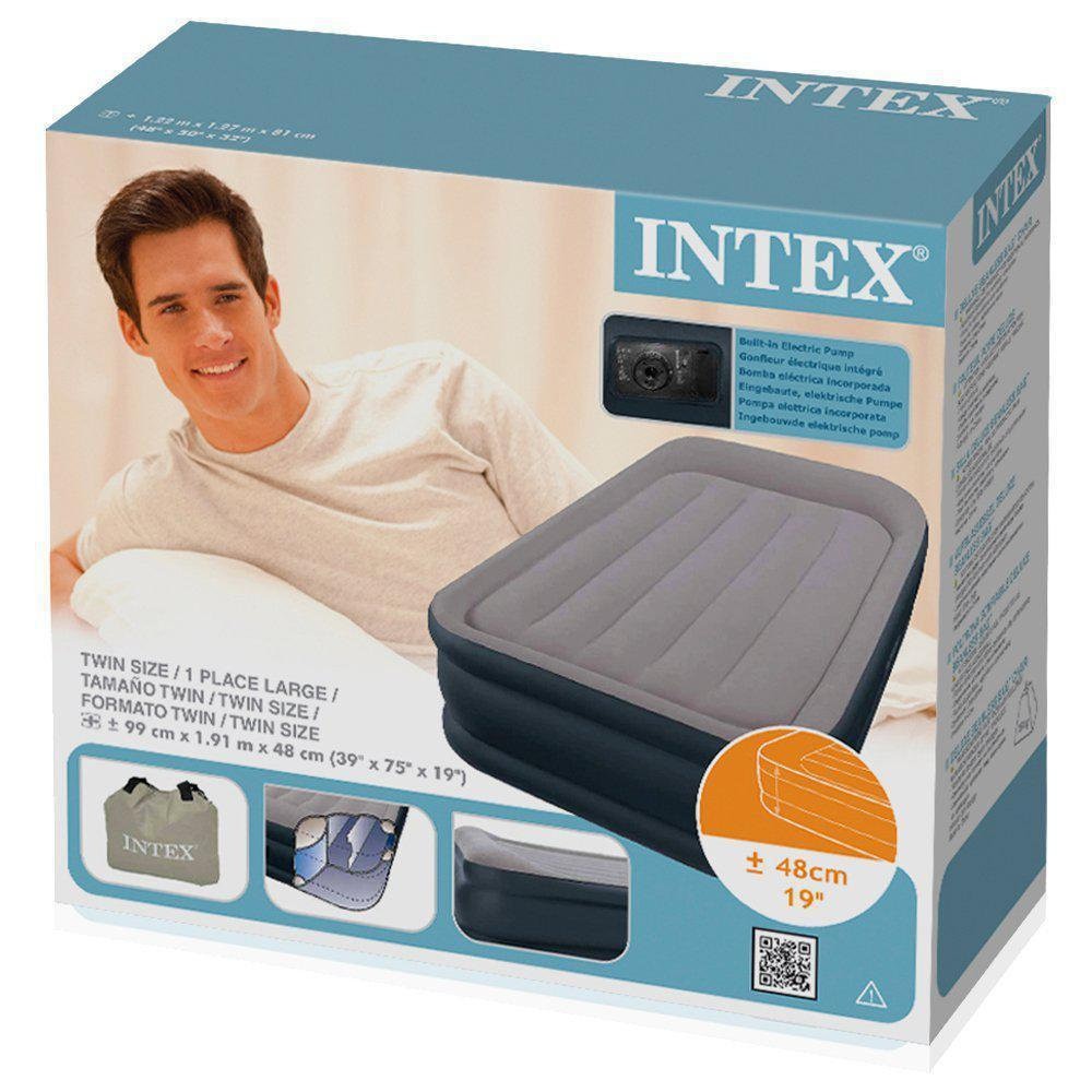 Надувная кровать intex - это качественное изделие и ПВХ материала имеющее велюровое покрытие, которое предотвращает соскальзывание простыни во время сна. В основном в надувную кровать уже встроен электрический насос, который работает от сети 220 вольт и может накачать ее за несколько минут. Надувная кровать пришла на смену неудобным советским раскладушкам, и производители стараются сделать надувную мебель все более комфортной. Надувная кровать может использоваться как дополнительное спальное место для Ваших гостей, так и для постоянного места для сна, еще для отдыха на природе или на даче.